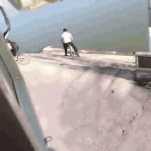 チャリで川に落ちていく高校生が面白い