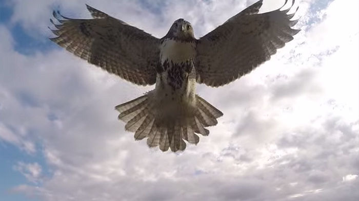 空中でドローンが鷹に襲われる瞬間の映像が